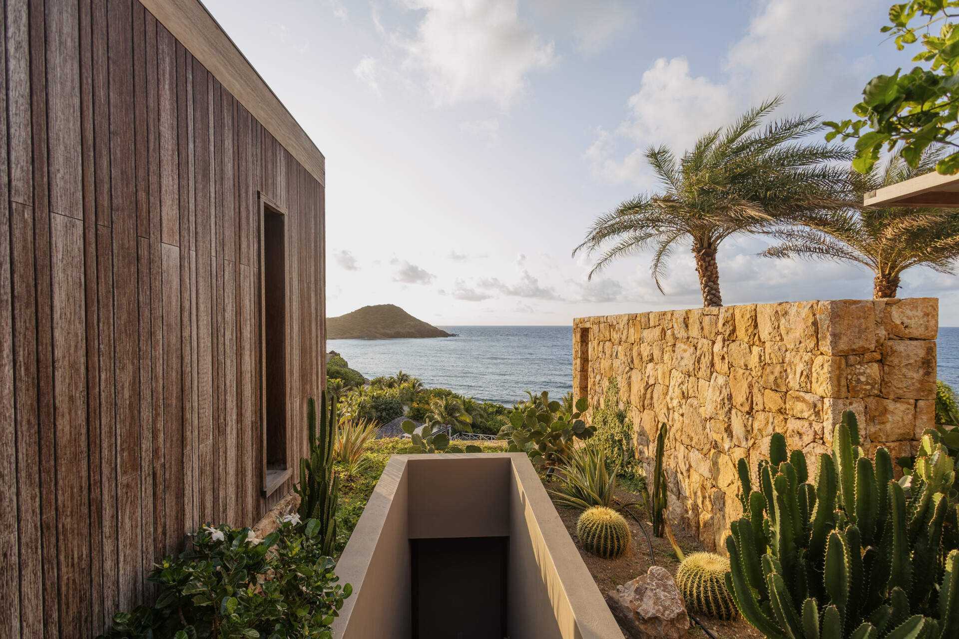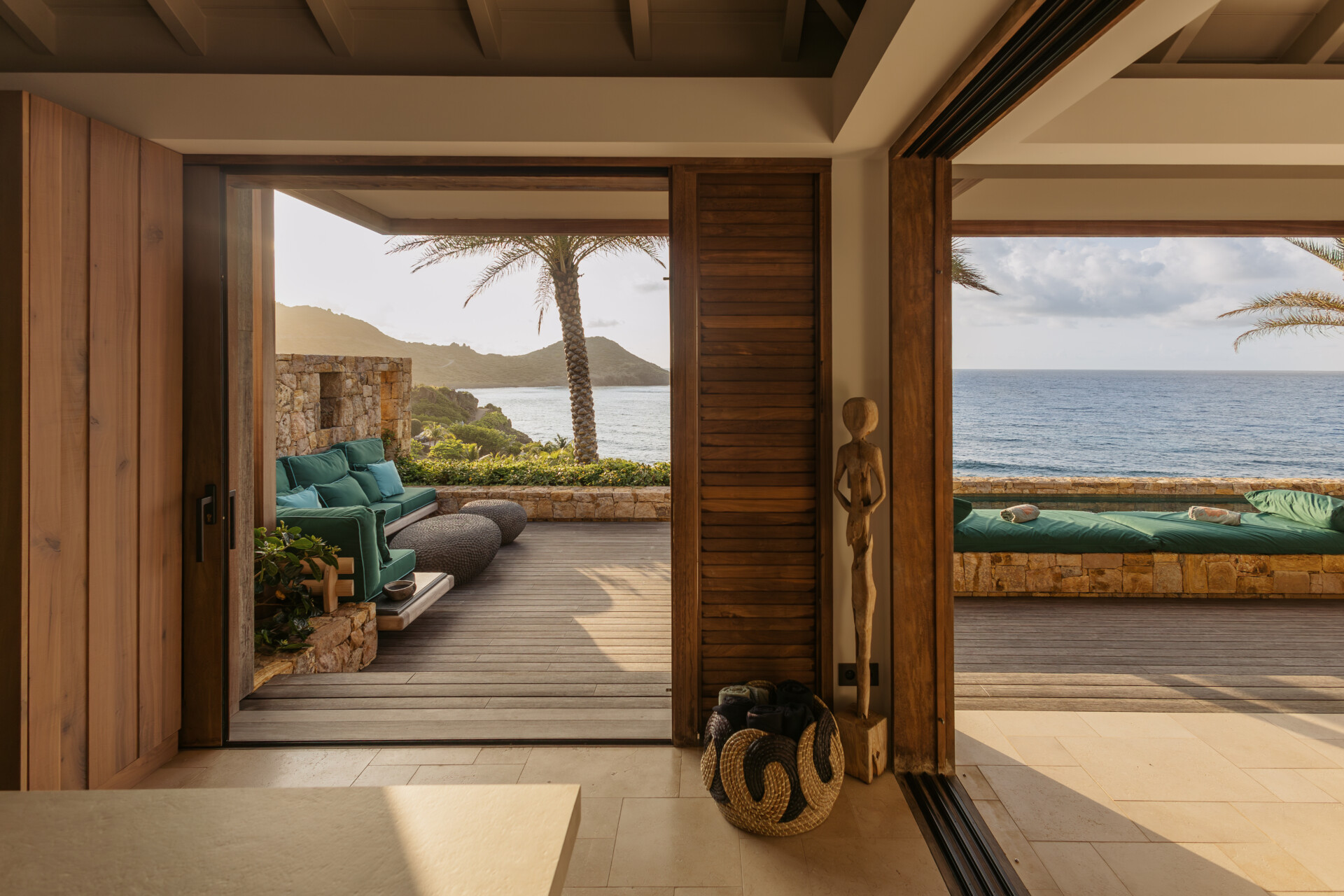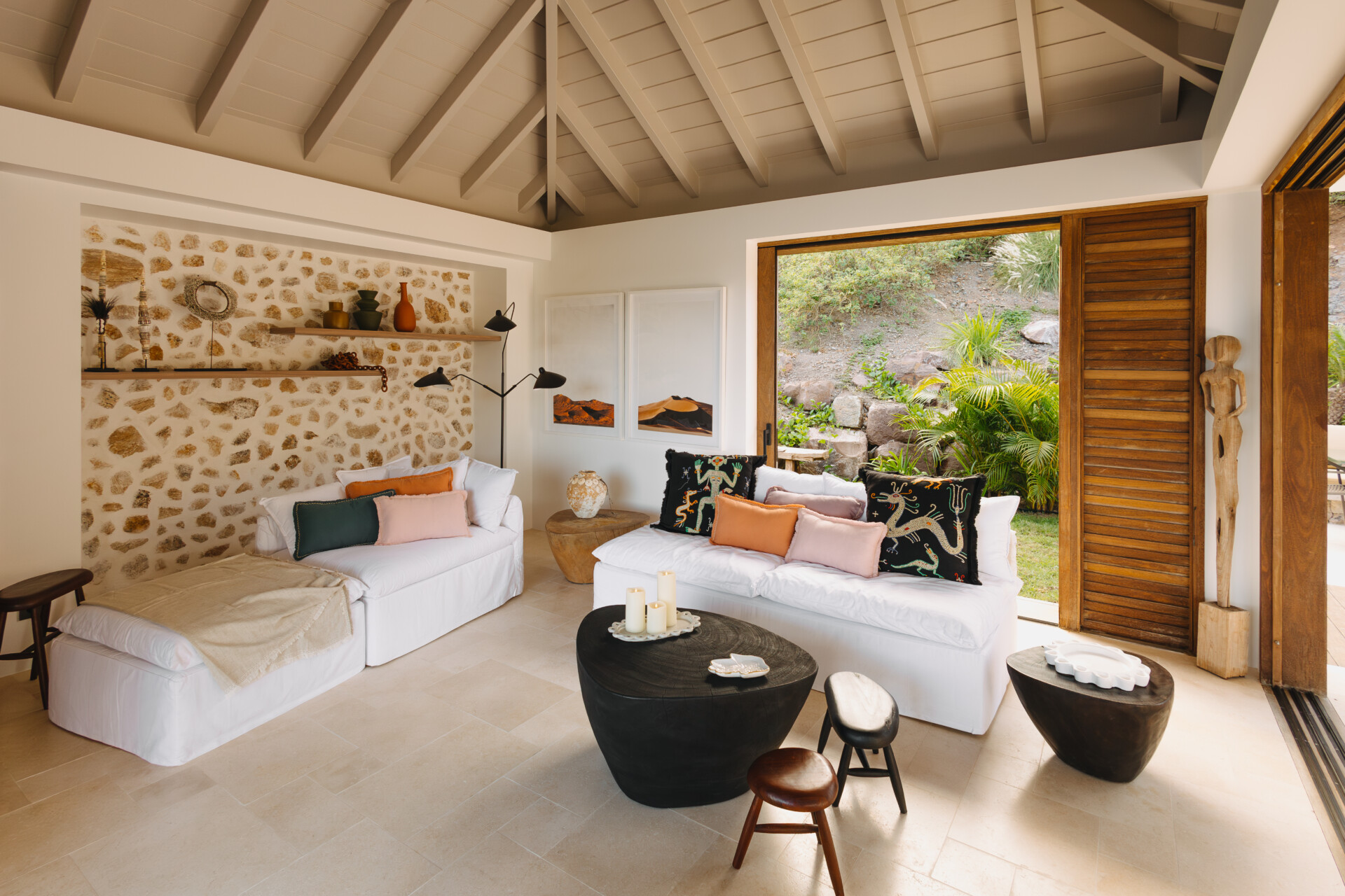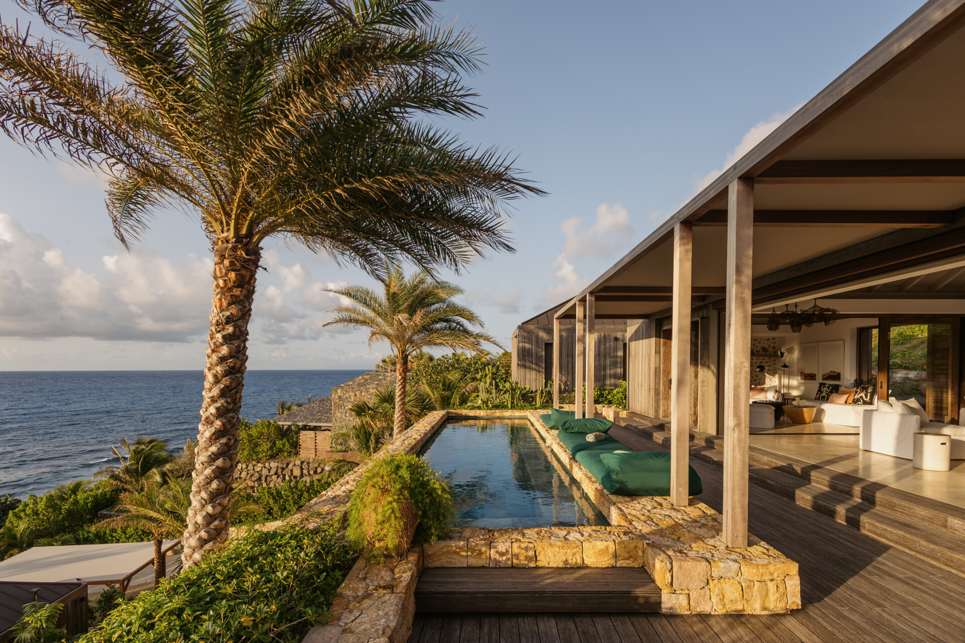 Set on the wild coast of Toiny, Villa Anima blends sculptural stone textures and natural wood with sleek contemporary lines, creating an atmosphere that is both striking and warm. Designed for ease and comfort, the villa makes the most of its hillside position with sweeping sea views and soft morning light.