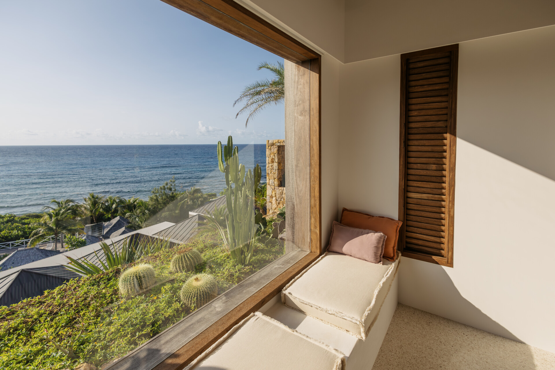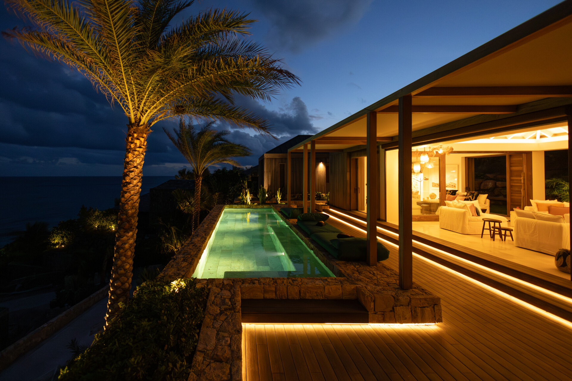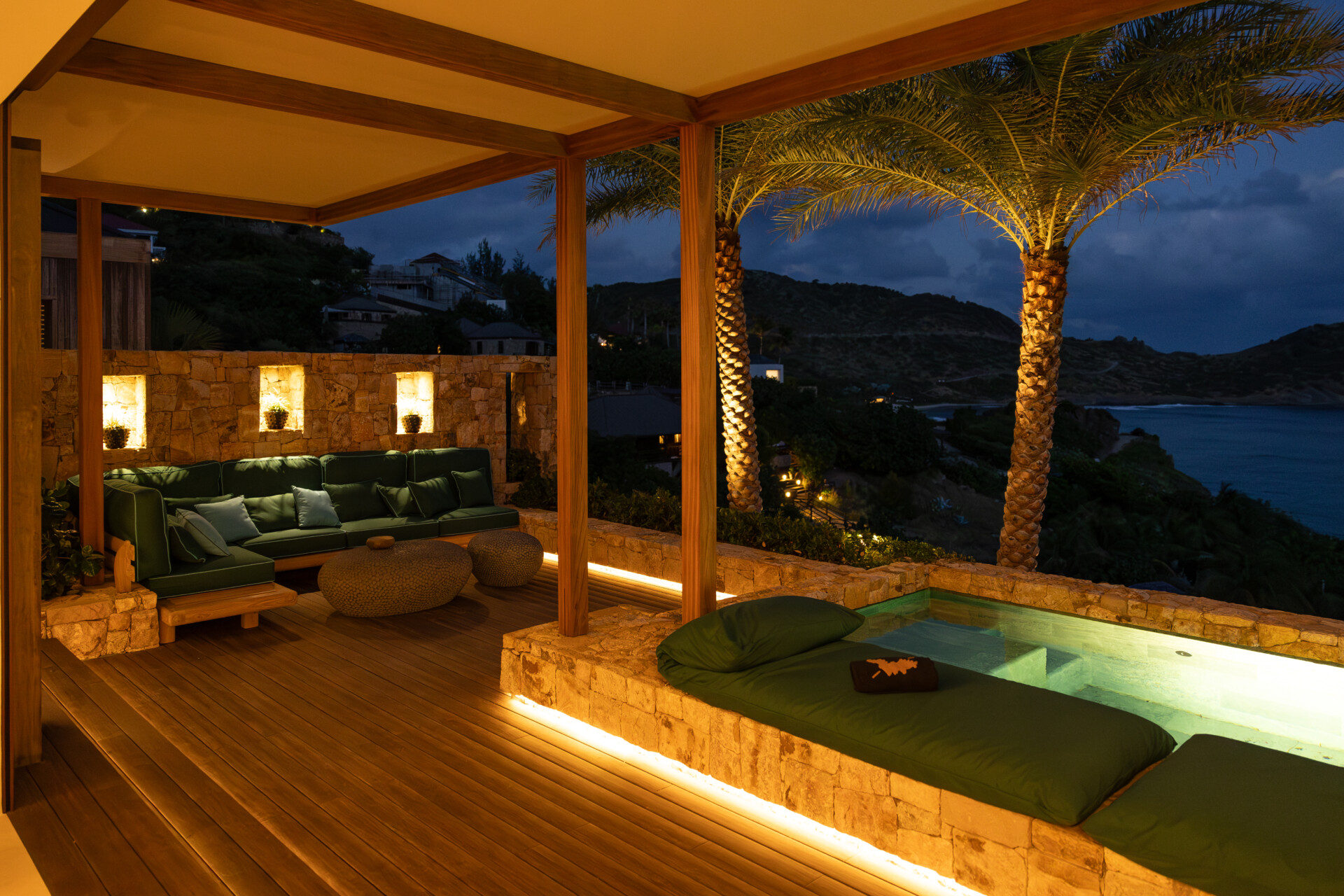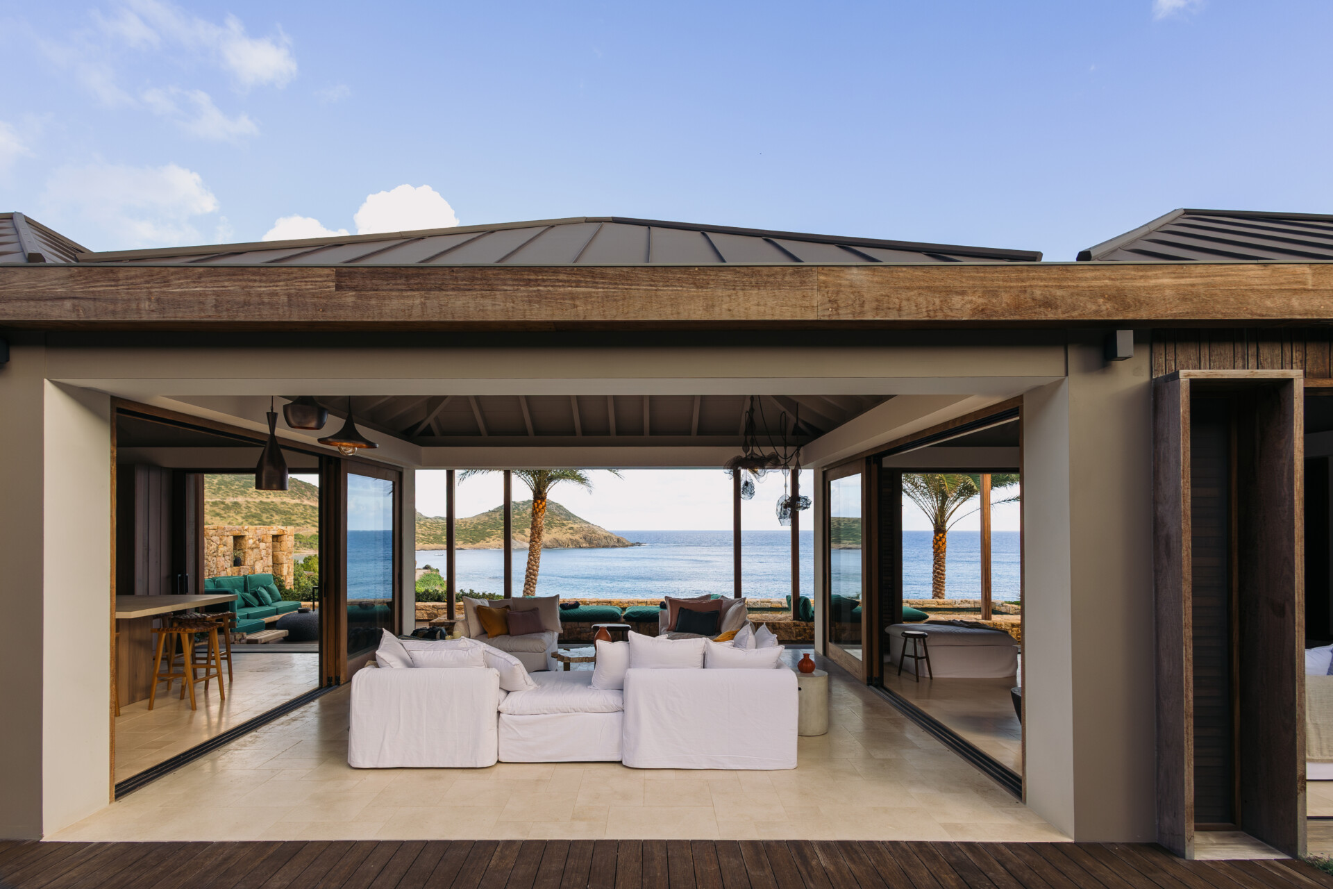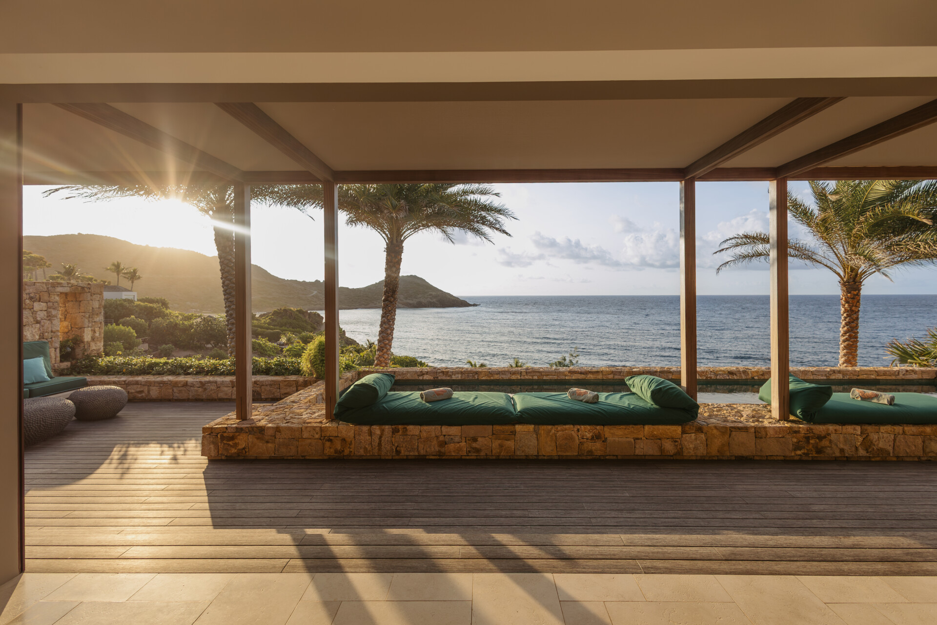 Set on the wild coast of Toiny, Villa Anima blends sculptural stone textures and natural wood with sleek contemporary lines, creating an atmosphere that is both striking and warm. Designed for ease and comfort, the villa makes the most of its hillside position with sweeping sea views and soft morning light.
