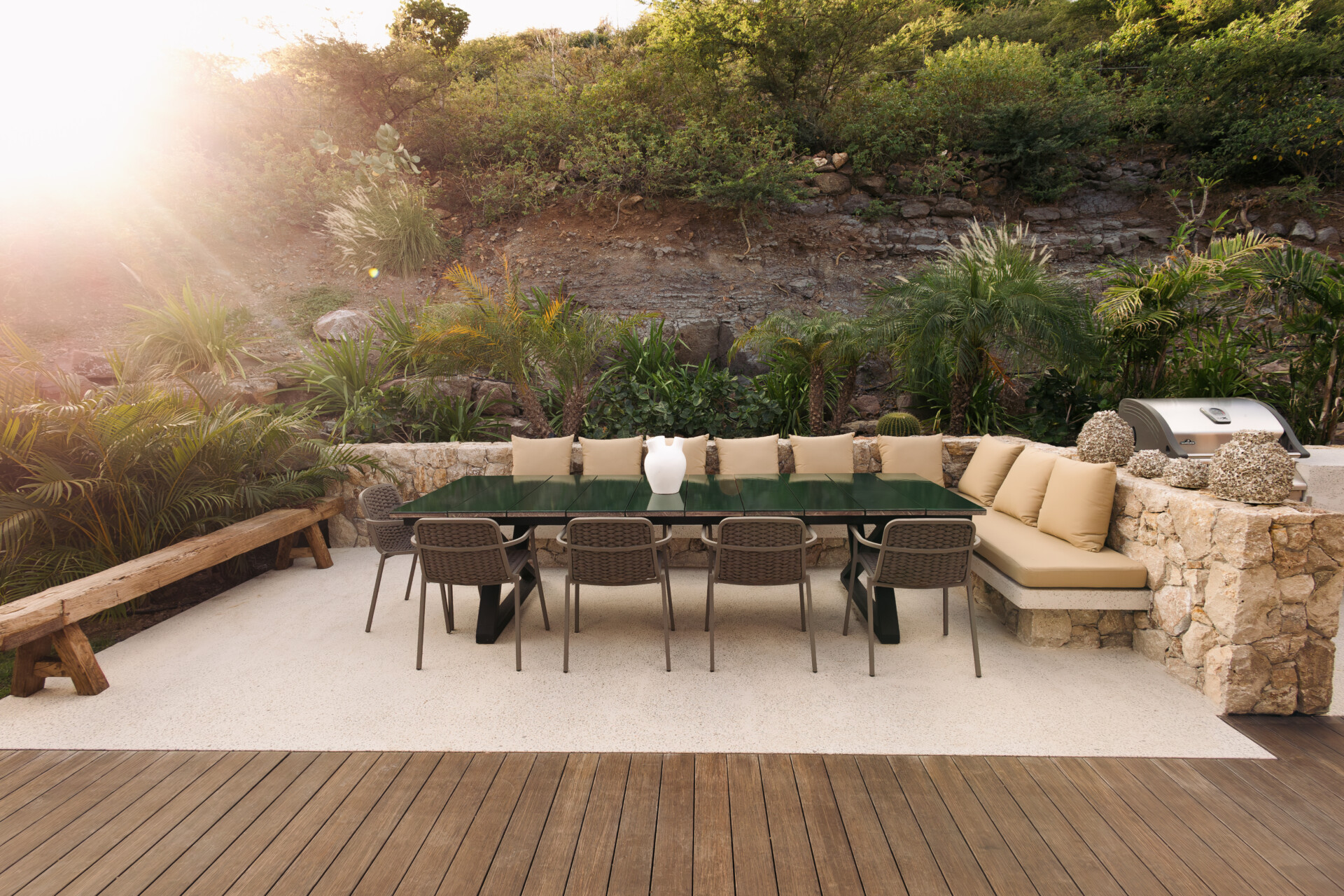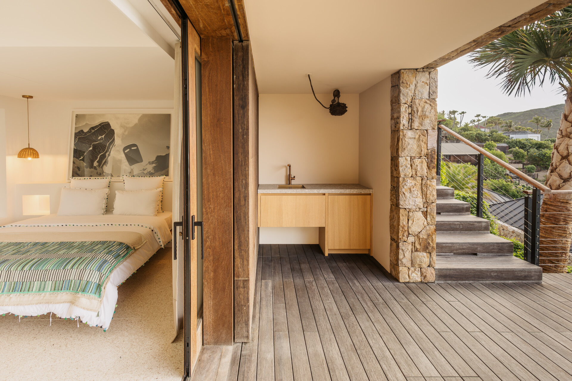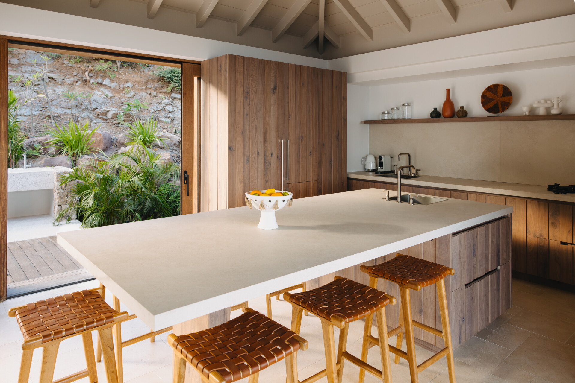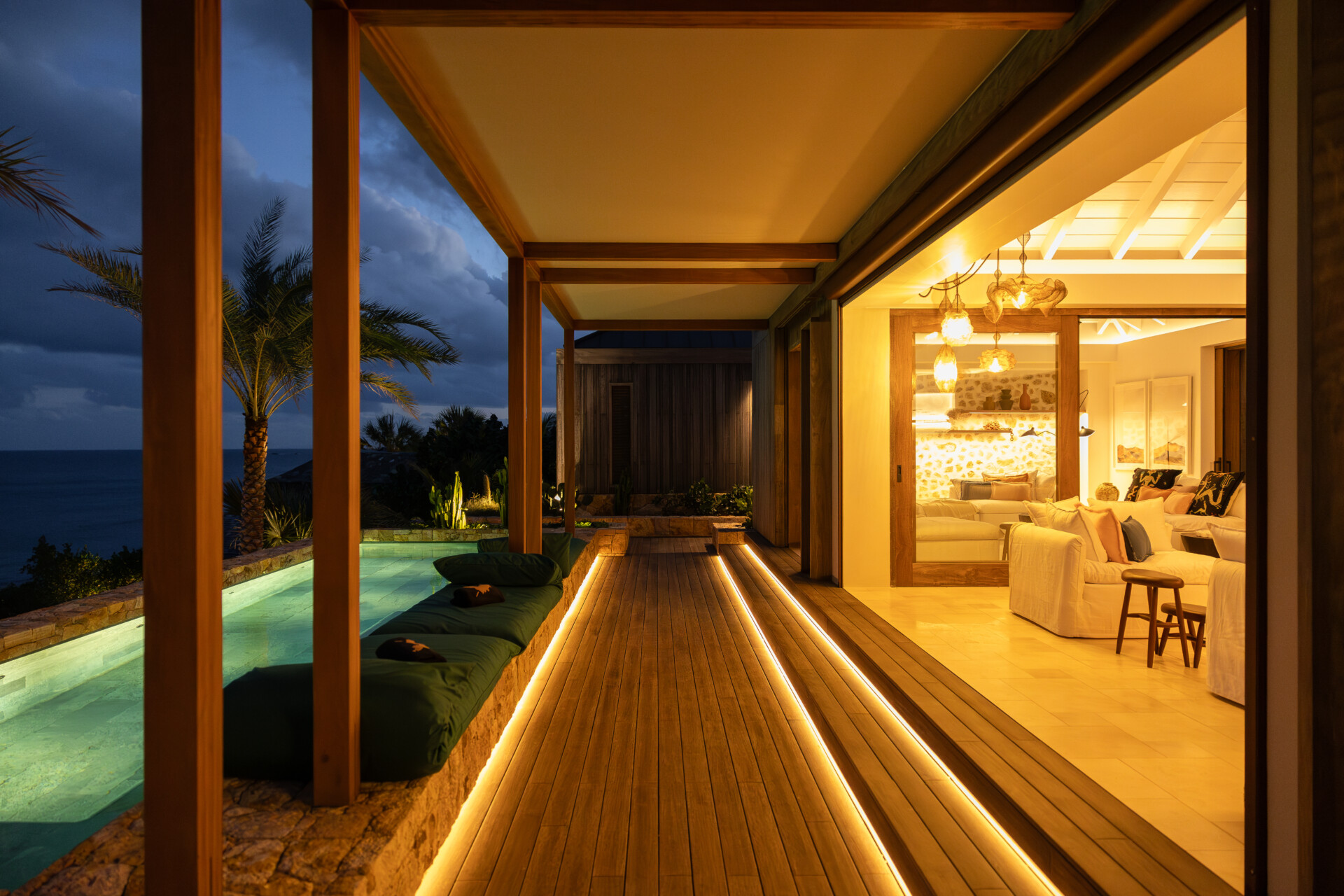 Set on the wild coast of Toiny, Villa Anima blends sculptural stone textures and natural wood with sleek contemporary lines, creating an atmosphere that is both striking and warm. Designed for ease and comfort, the villa makes the most of its hillside position with sweeping sea views and soft morning light.