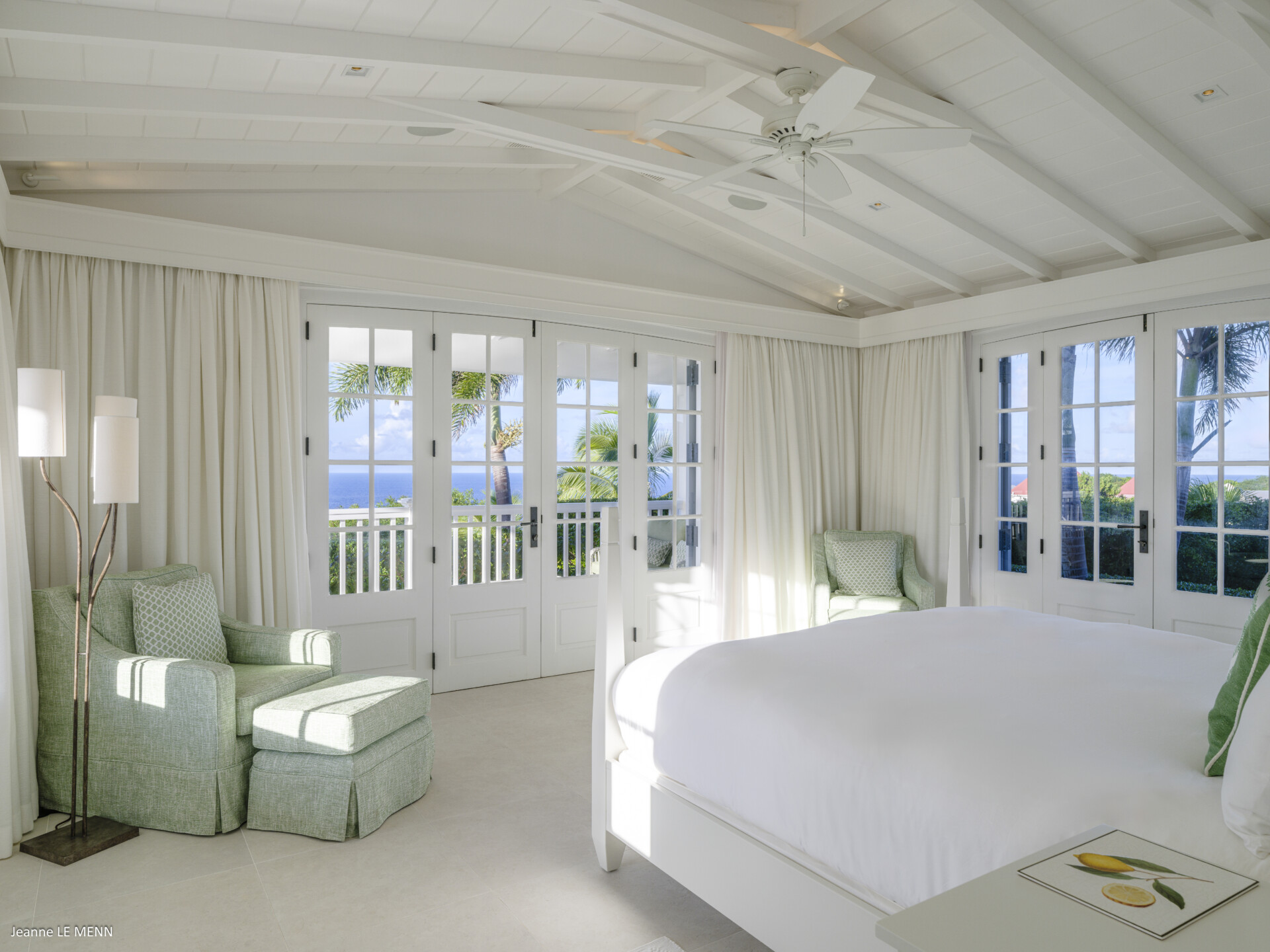 King Bed (190 x 200 cm), A/C, Ceiling Fan, Private Terrace, HDTV, Dish Network, Apple TV, Sound System, Phone, Programable Safe, Ensuite Bathroom, Rain Head Shower, Bathtub, Hair Dryer, Office with a Printer, iPad, HDTV