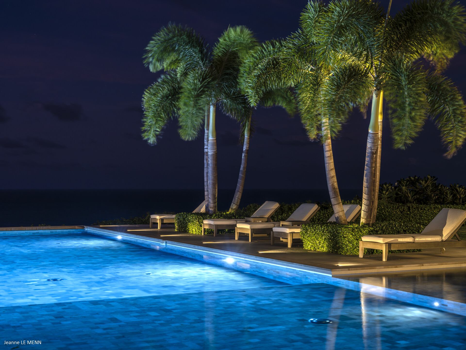 The infinity swimming pool is one of the biggest heated pools on the island and is surrounded by sunbeds and palm trees to catch the breeze and provide shade.
