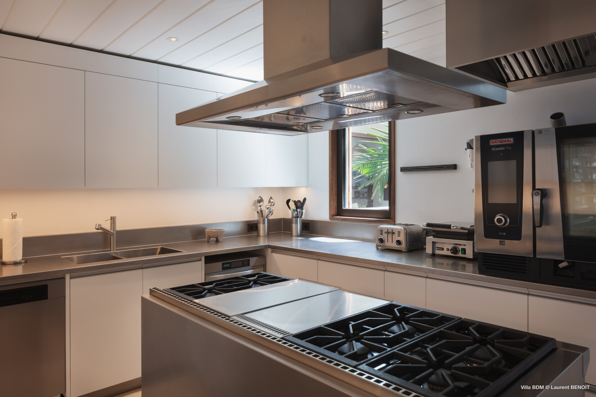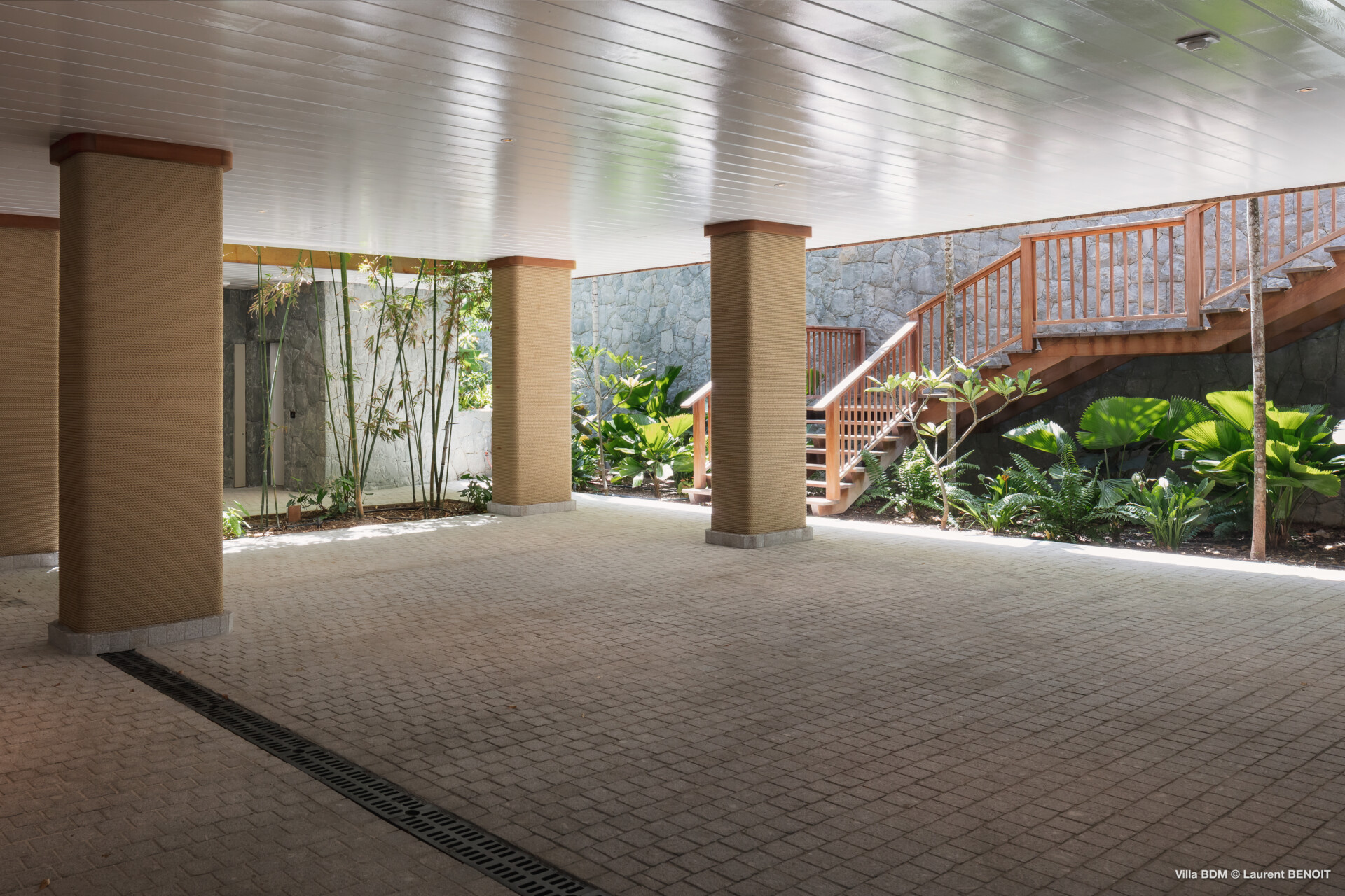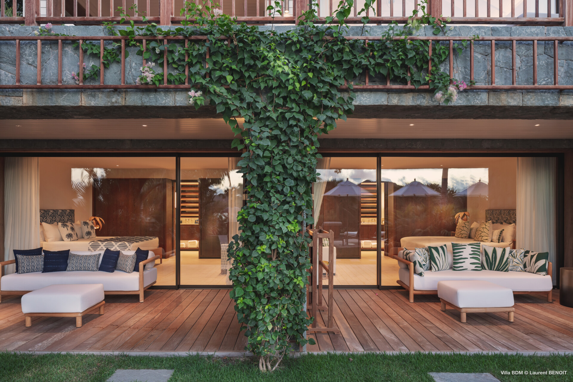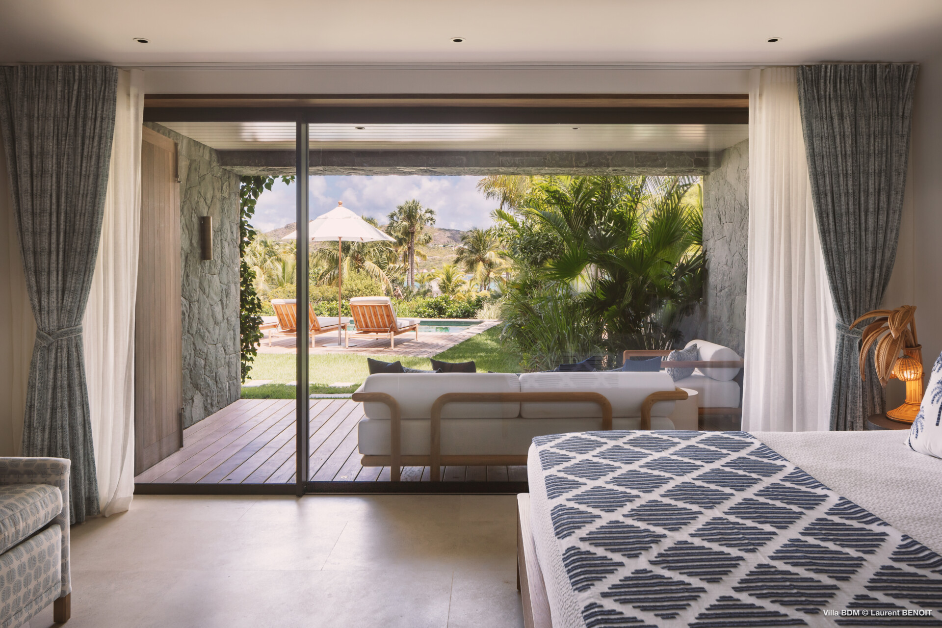On the lower level, two additional bedrooms extend the villa’s comfort – including one designed with two full beds. This floor also houses a well equipped fitness room and a dedicated massage room. A pétanque court, table football, and a ping pong table add a playful touch for families and friends. From here, a private path leads directly to Little St. Jean Beach.