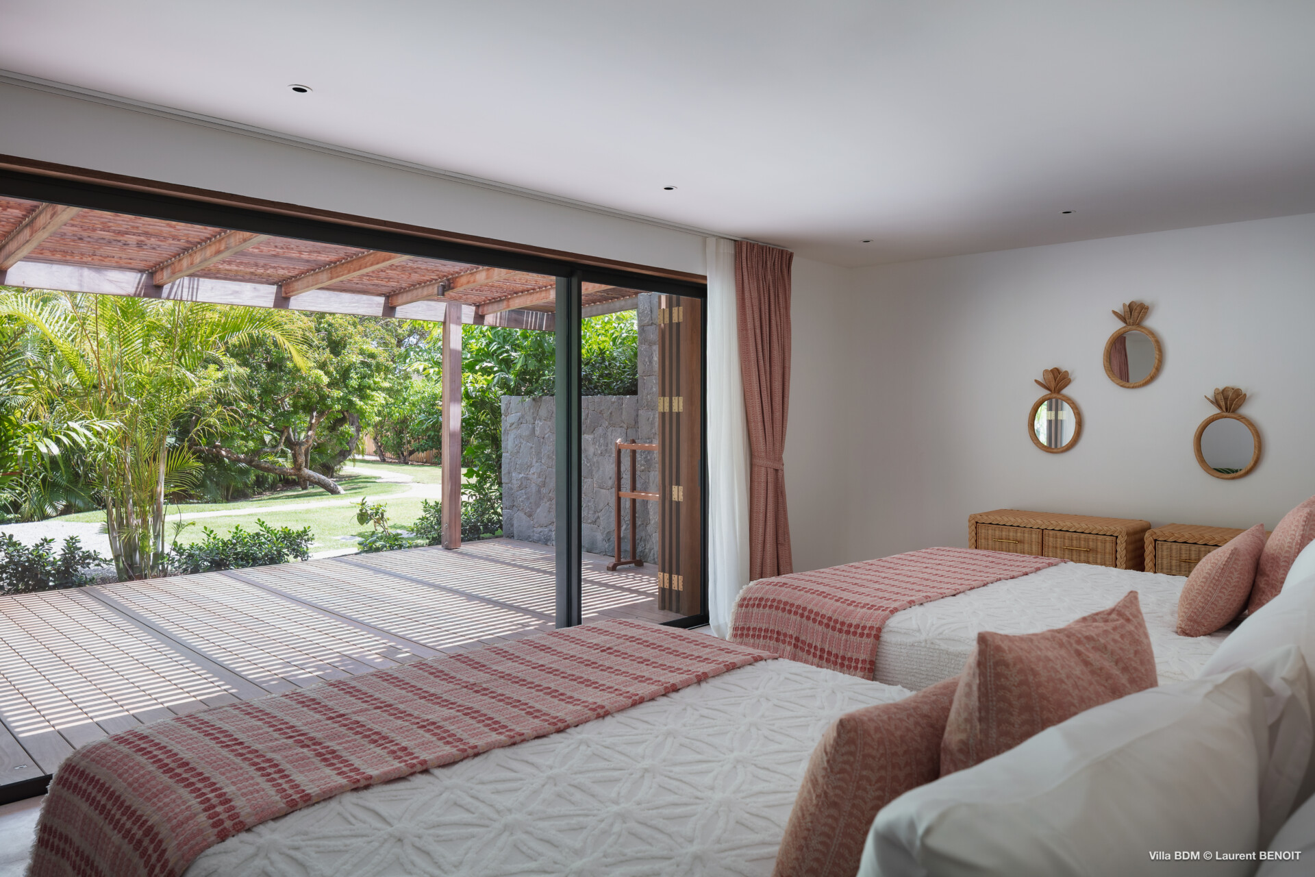 One level up, the primary suite enjoys greater seclusion with its own outdoor sitting area, alongside a guest bedroom that shares the elevated views.