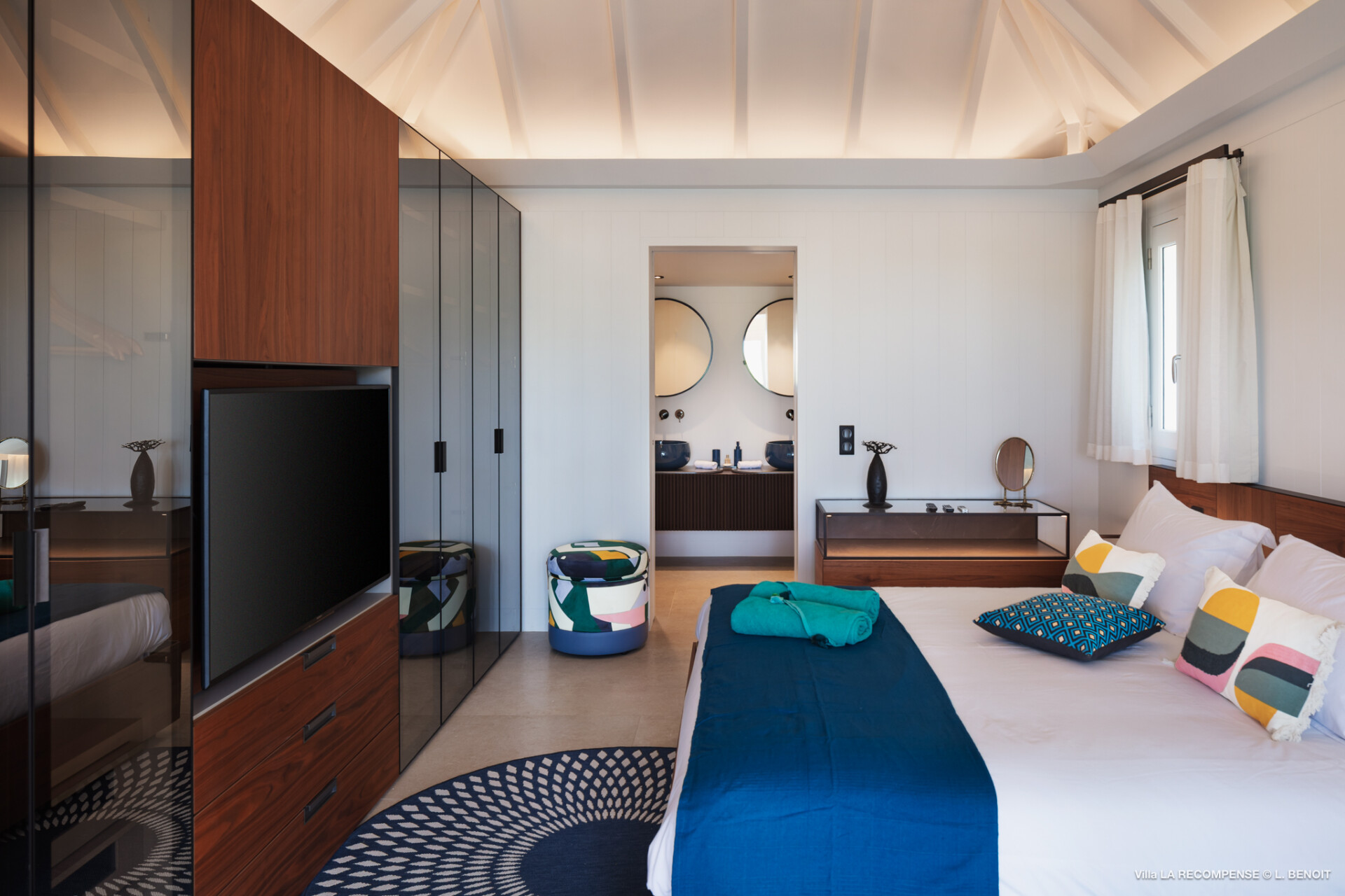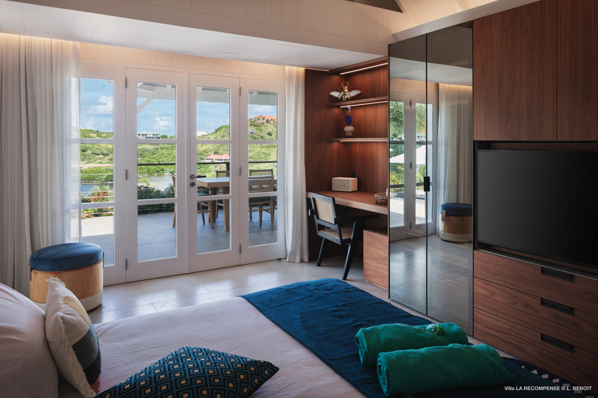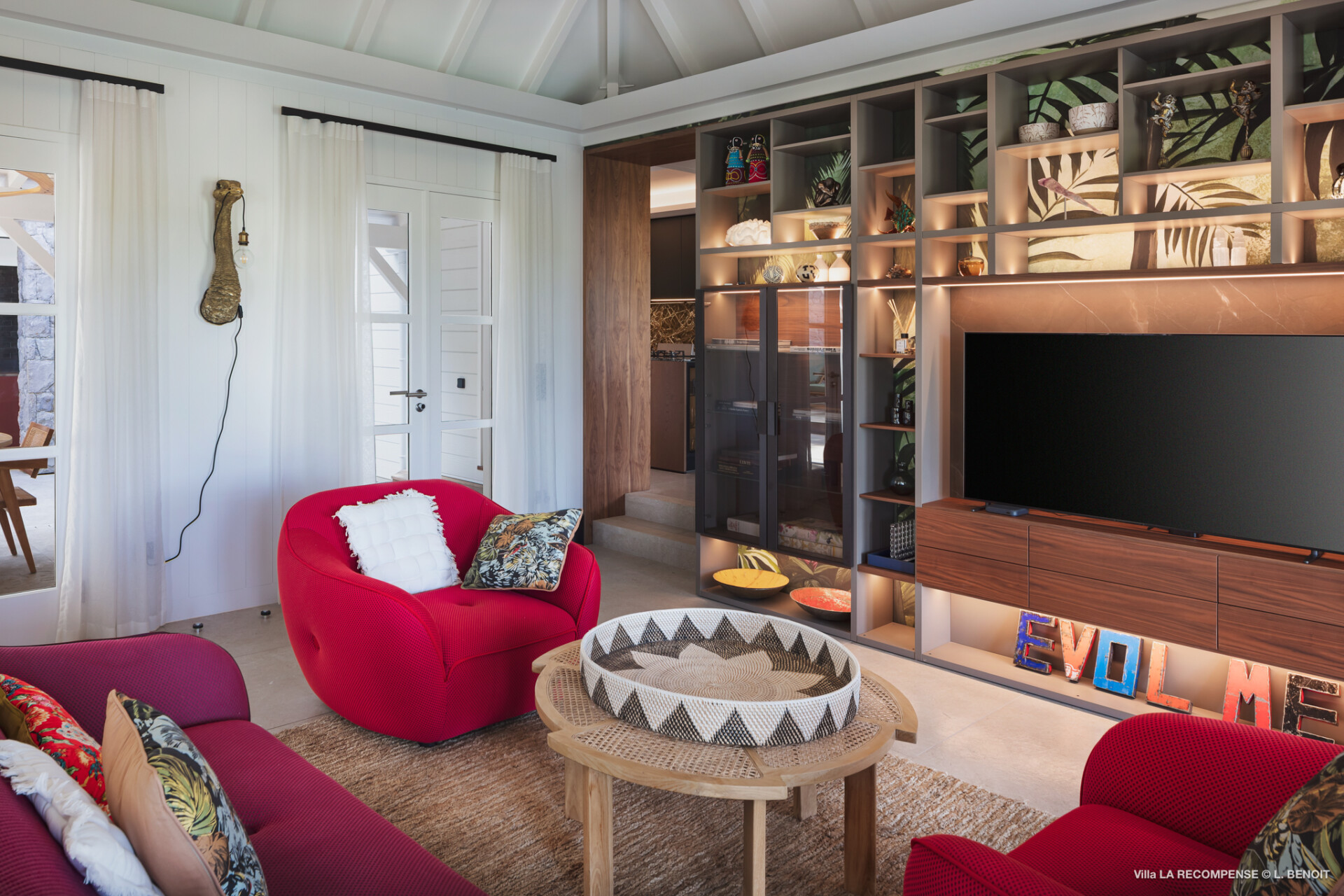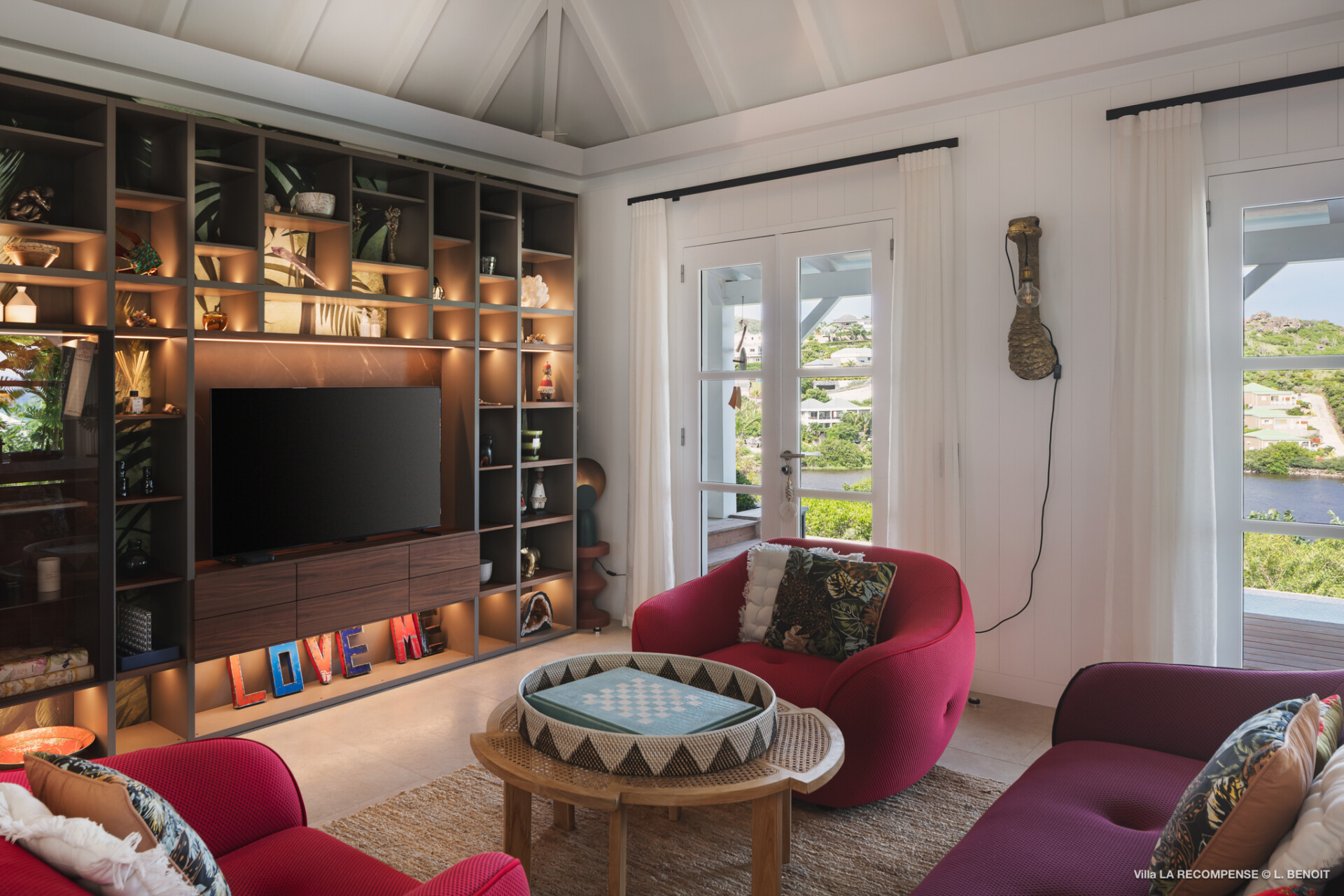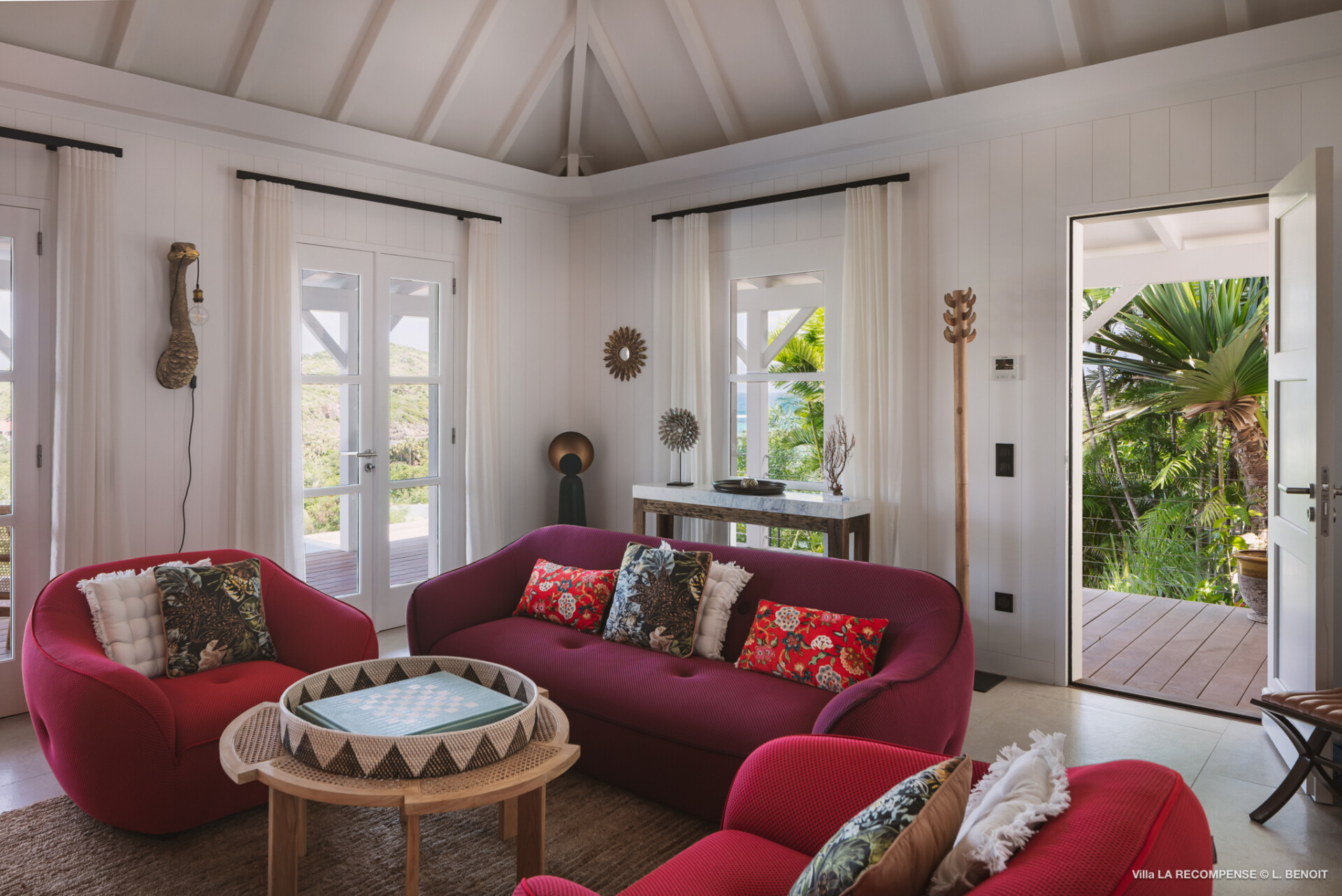 Villa La Récompense is a fully air-conditioned four-bedroom villa located in Petit Cul de Sac, combining traditional St Barth architecture with modern comfort and thoughtful design. Warm tones, vibrant accents, and welcoming interiors create a home that feels both lively and inviting.