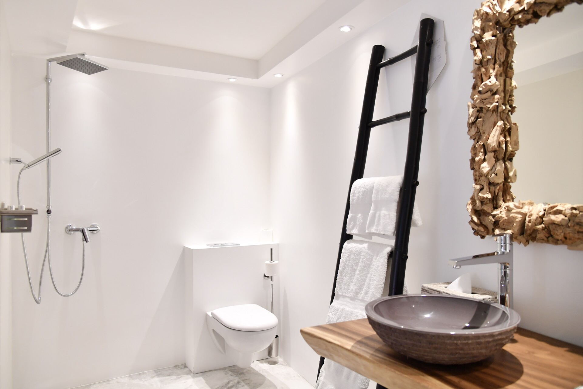 The villa offers four bedrooms, each furnished with a king-size bed, ensuite bathroom, and consistent, soothing décor that balances privacy with a sense of connection.