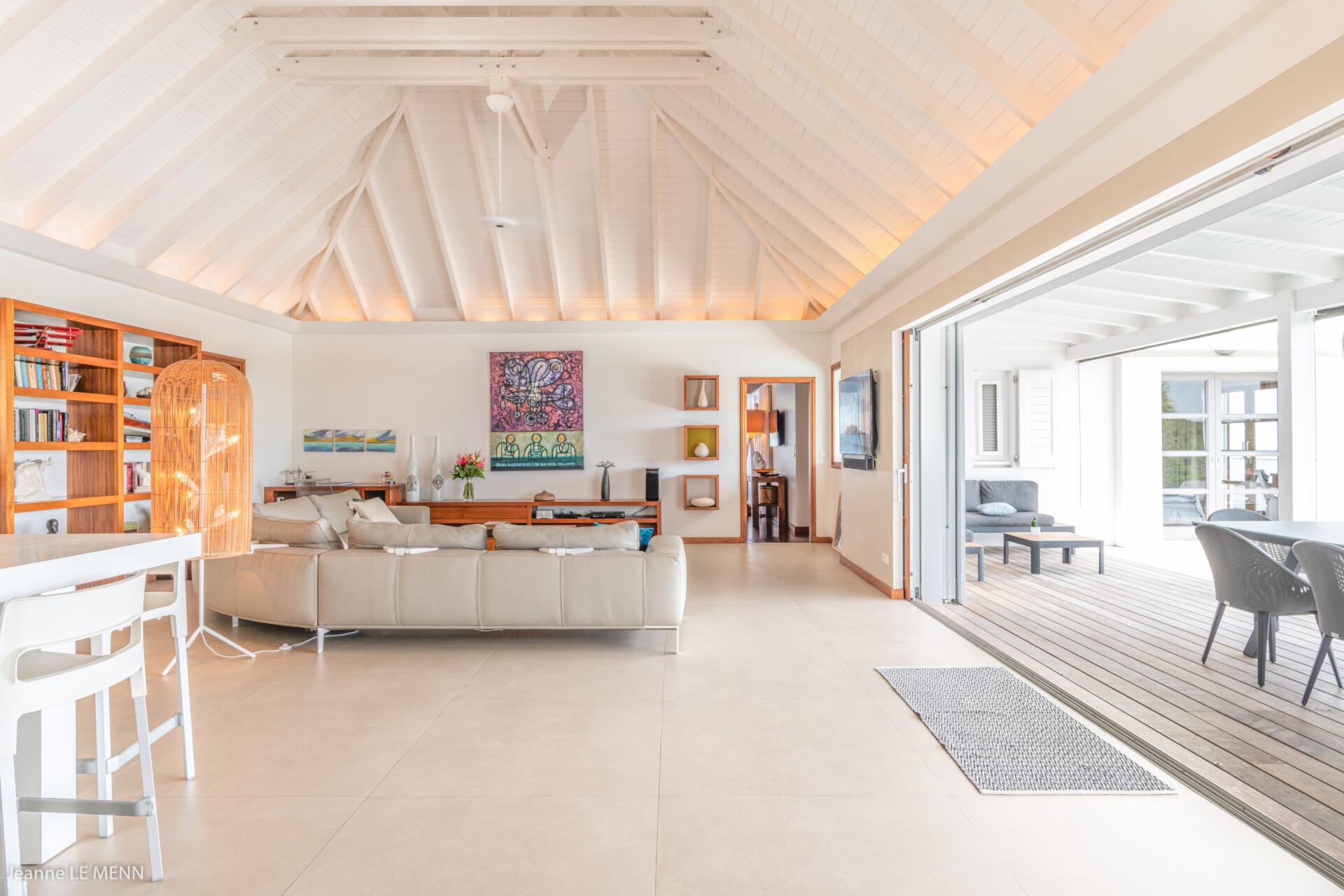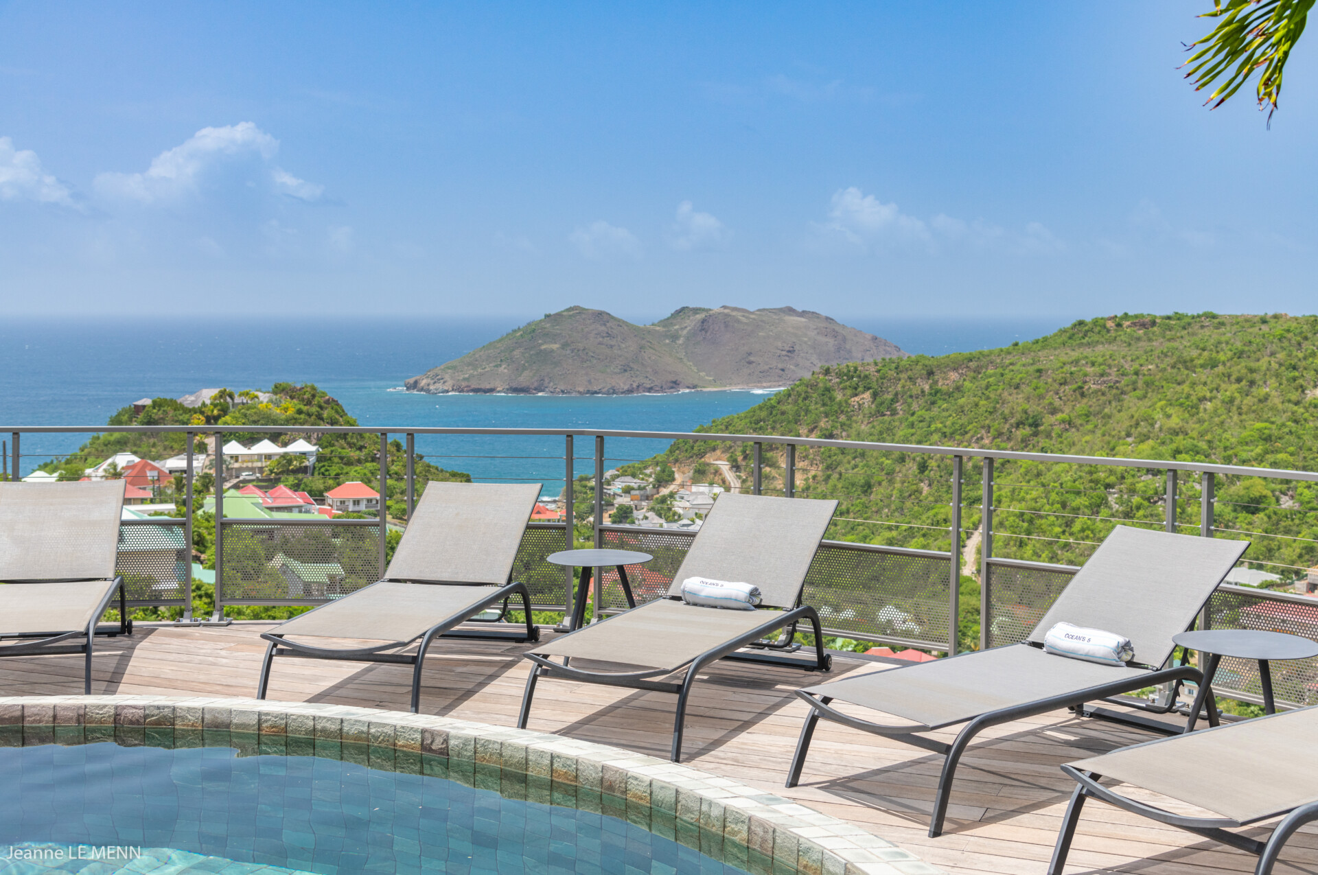 Villa Ocean’s 5 (OCN) is clean and crisp with modern elegance and charm, offering spectacular views over the ocean and the nearby island of Bonhomme. Located on the hillside above the Flamands Bay, one of the most sought-after areas of St. Barth, this luxury rental home is convenient to town and the Cheval Blanc hotel, as well as a pure, white sand beach. It’s a dream getaway for people who want Caribbean ease and simplicity along with St. Barth chic and sophistication.
