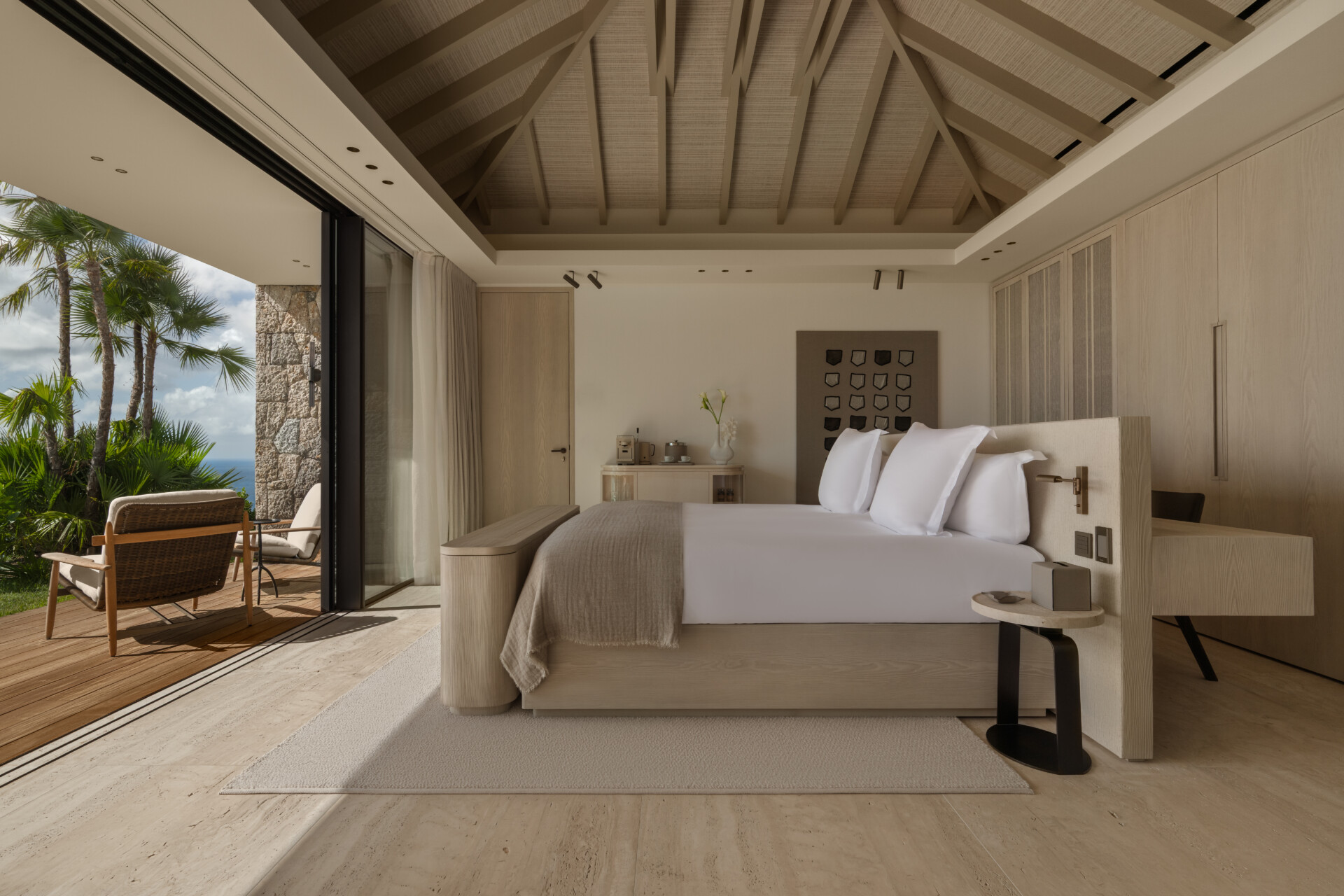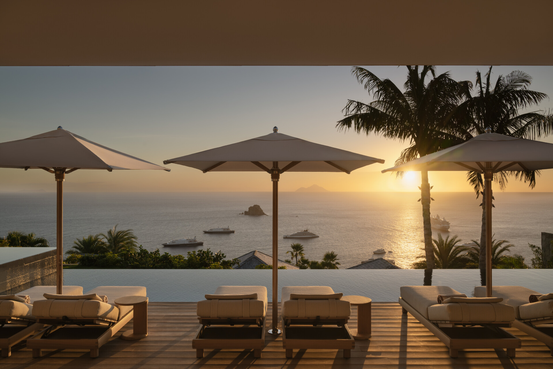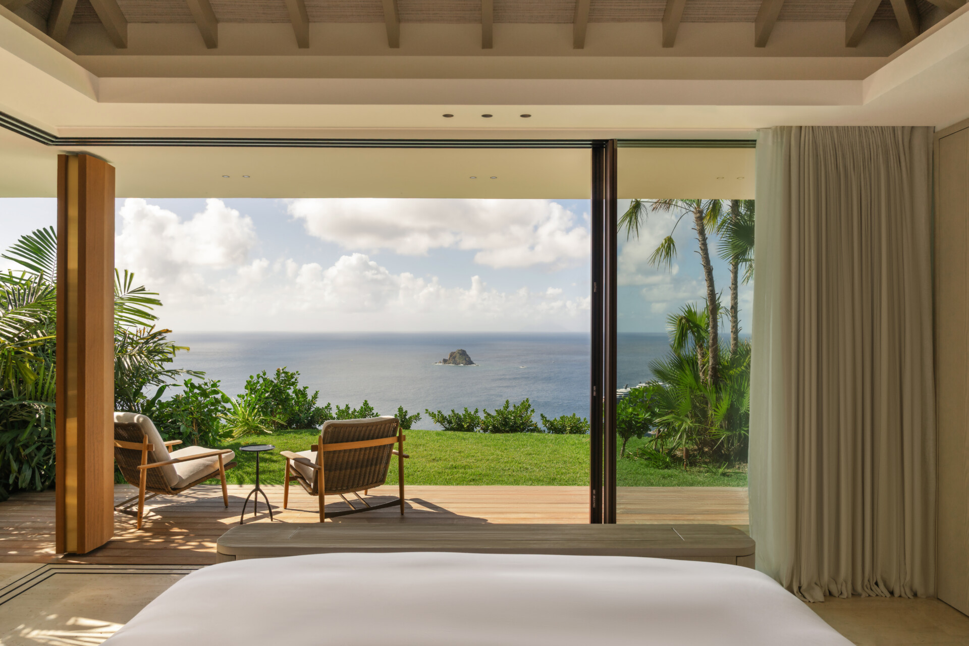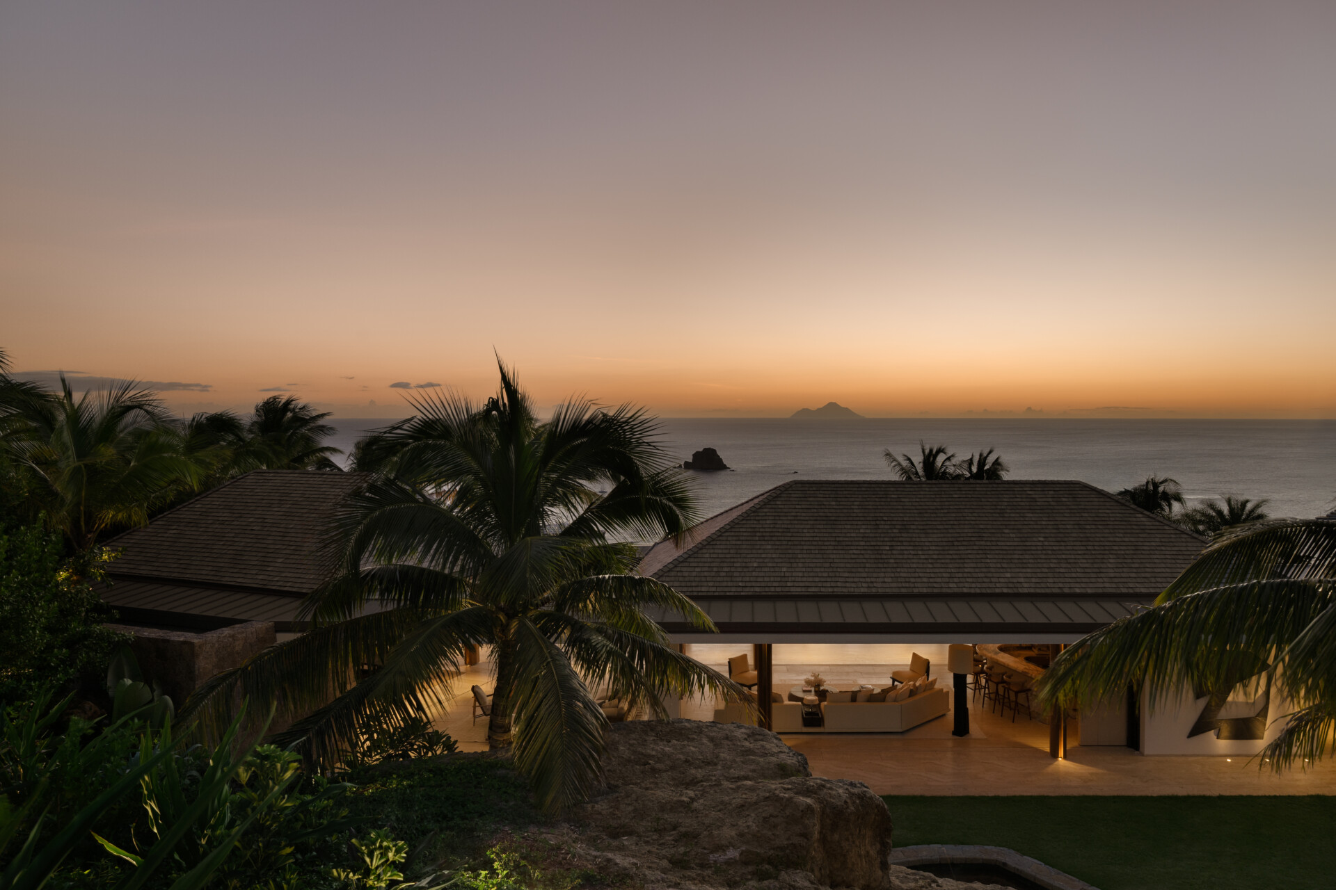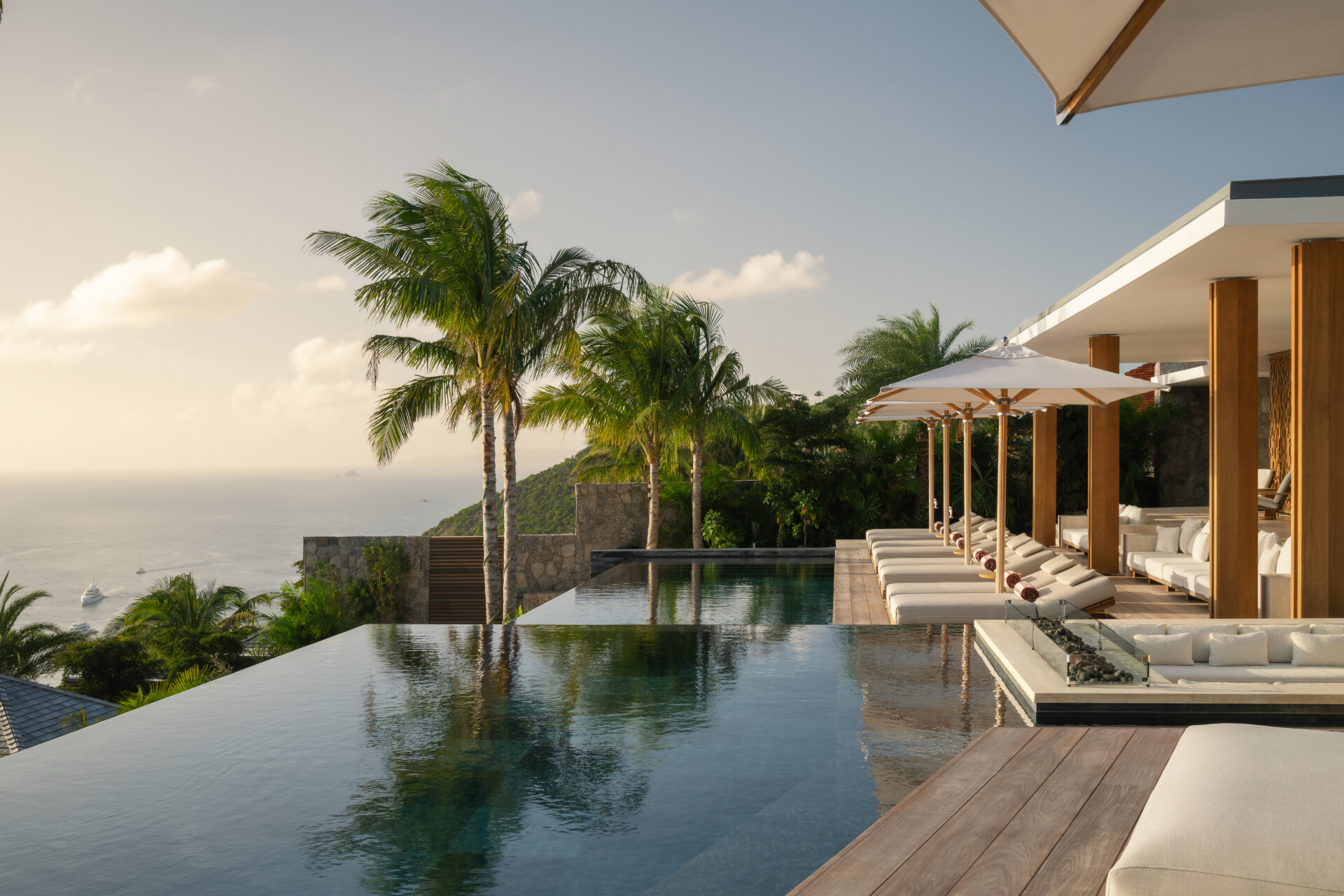 At the highest crest of Colombier, where the horizon opens wide and the sea stretches endlessly toward Flamands and the protected shores of Colombier, Villa Omai Zilé commands one of the most extraordinary vantage points on St. Barth. Sunrise arrives in quiet brilliance. Sunset lingers in molten gold. From every angle, the villa engages in a living dialogue with sea and sky.