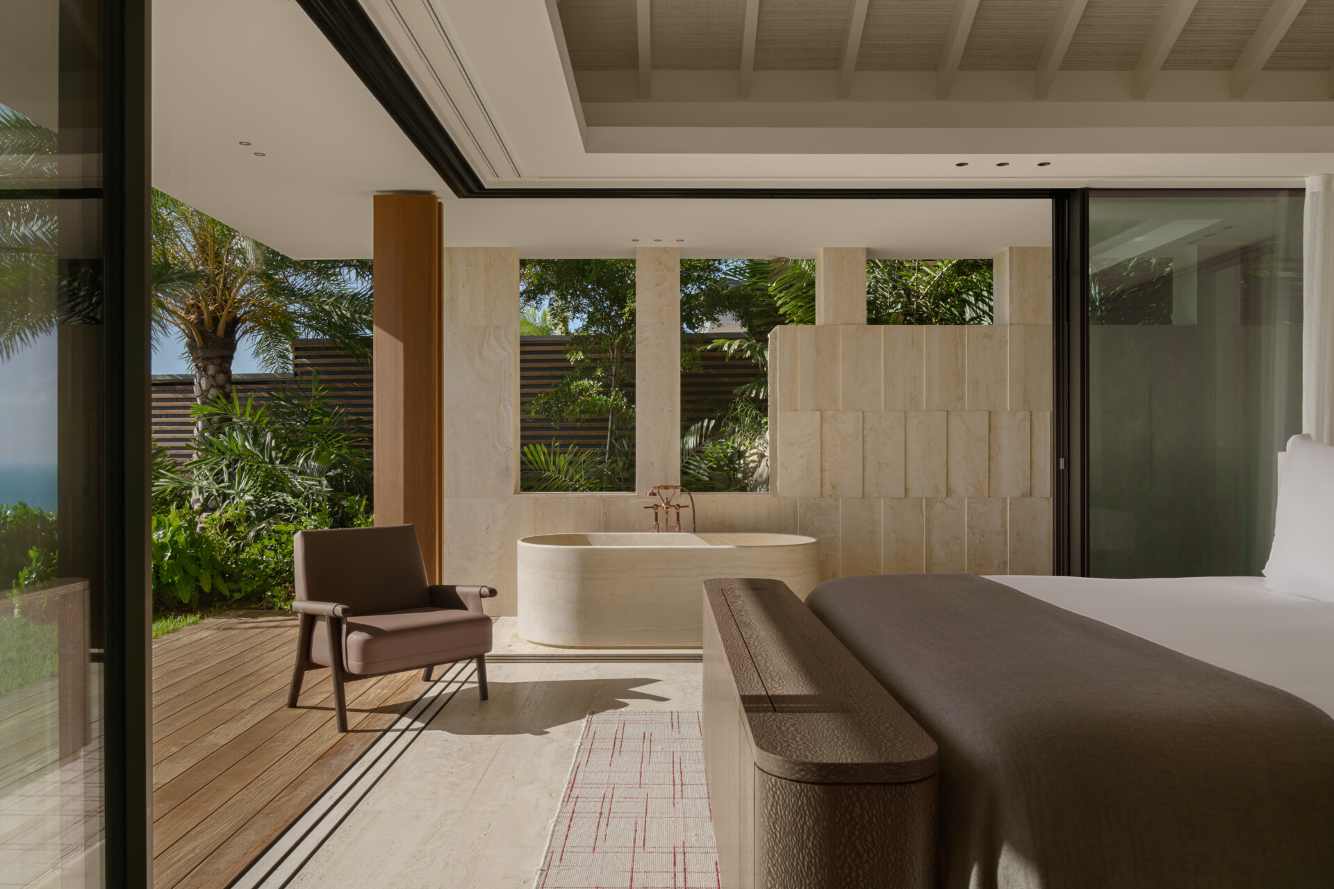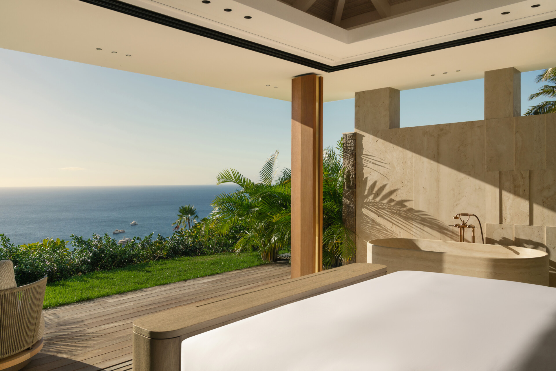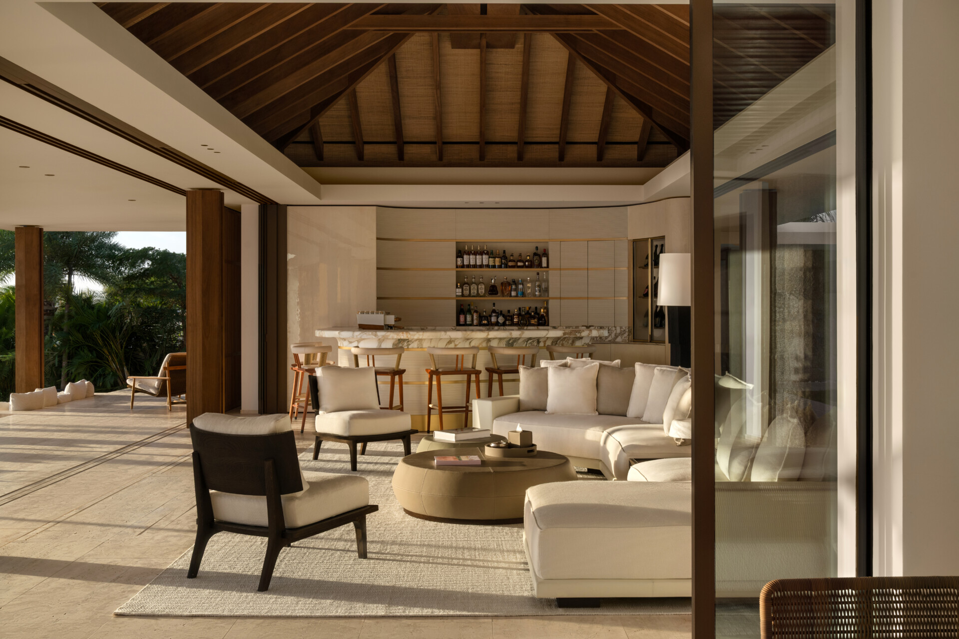 Conceived in collaboration with world-renowned architects, Omai Zilé is not simply a residence but a sculptural composition. Clean modern lines are softened by noble materials - Italian marble veined like natural cartography, timber mellowed by time, textiles that invite touch. The design is striking yet serene. Grand in scale, yet intimate in atmosphere.