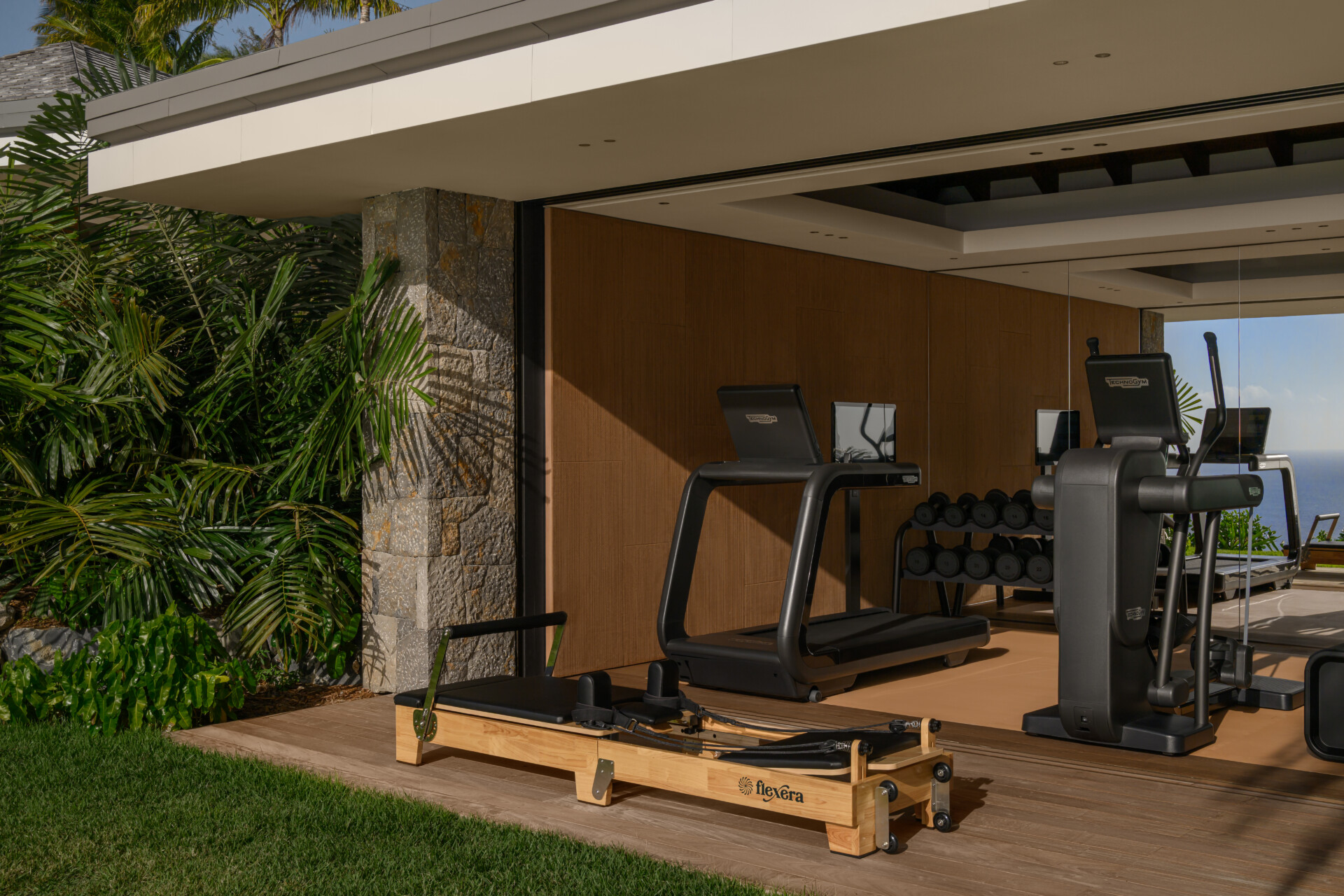 Wellness and entertainment are elevated to a private-club level. A Technogym-equipped professional fitness studio. A dedicated yoga deck. A wellness bar. A private cinema. A curated wine cave for bespoke tastings. A nightclub for evenings that extend into dawn. And the island’s only private padel court, set against the dramatic backdrop of Flamands Beach. Advanced acoustic design ensures that even celebration remains enveloped in serenity.