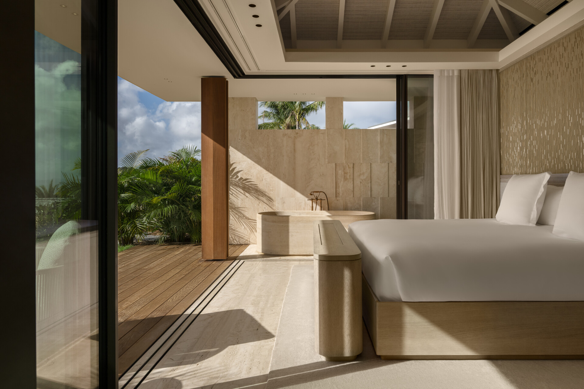 King Bed, A/C, Private Terrace, HDTV, Dish Network, Apple TV, Sound System, Private Access to Room, Mini Fridge, Coffee Maker, Programmable Safe, Ensuite Bathroom, Outdoor Shower, Bathtub, Hair Dryer